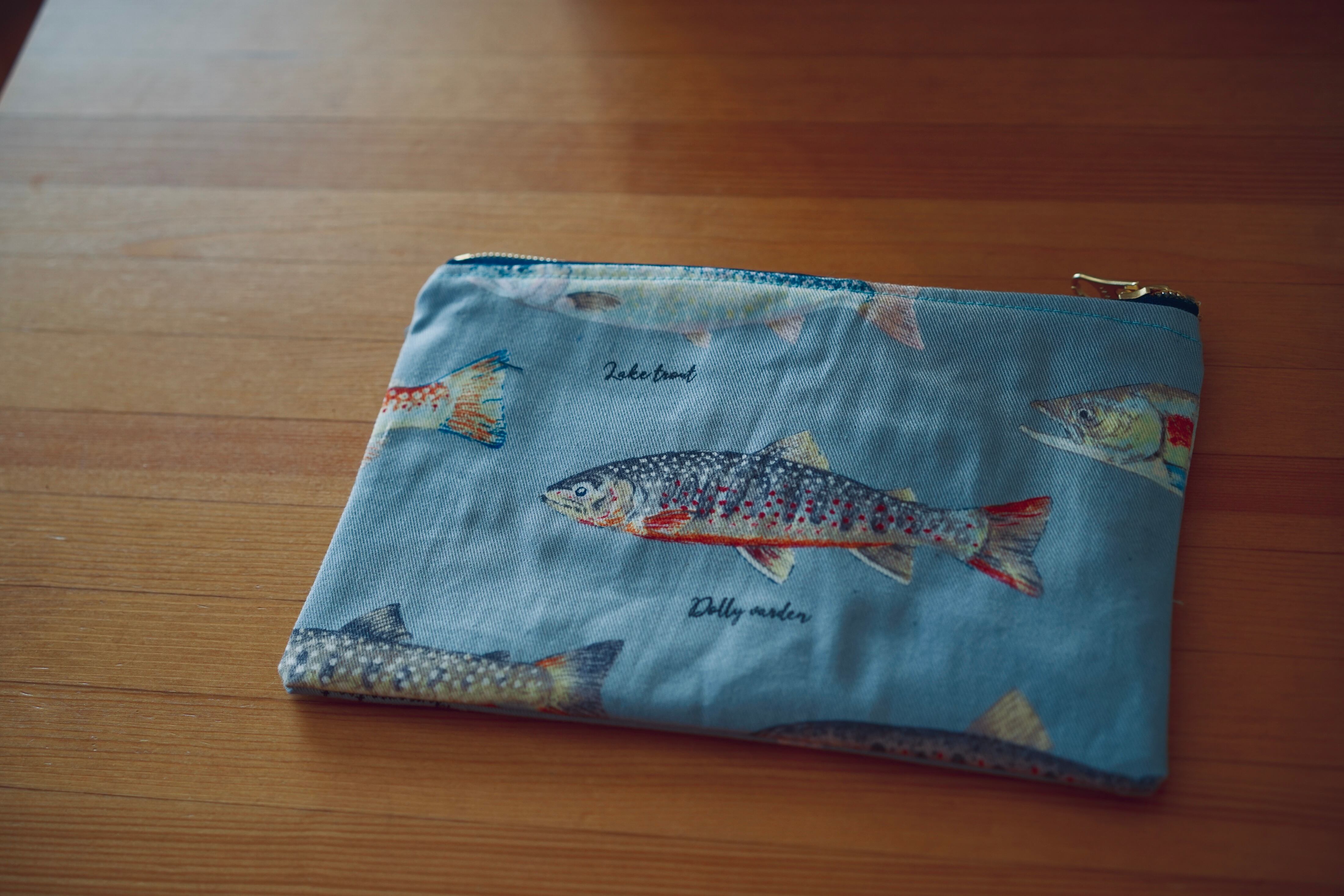 トラウト柄のポーチ